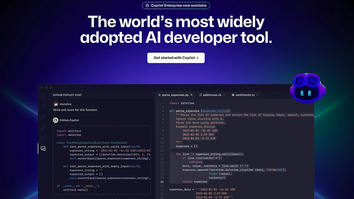 GitHub Copilot is an AI coding assistant that helps developers write code faster with less effort. It provides contextual assistance, offering coding suggestions as developers type, which could be a line completion or a whole new block of code. This helps developers focus more on problem-solving, collaboration, and innovation. Integrated with leading editors and natively built into GitHub, it’s the most widely adopted AI developer tool, enhancing job satisfaction and productivity.
