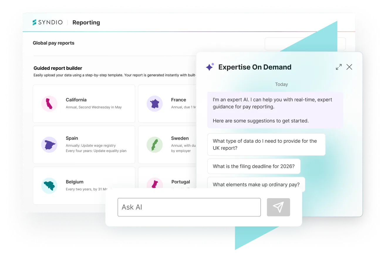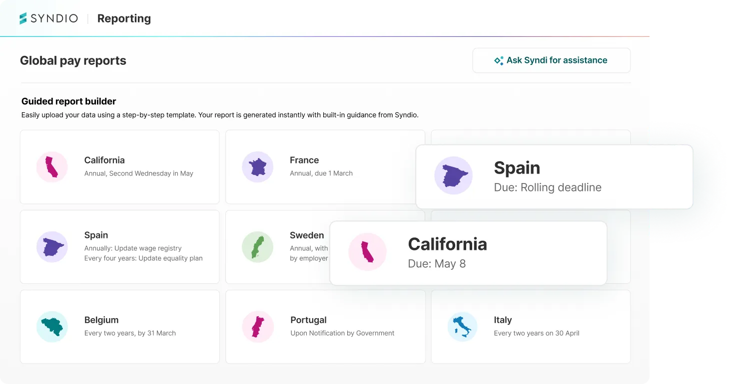 Syndio’s Global Pay Reporting solution helps organizations meet international pay equity and transparency requirements with ease.