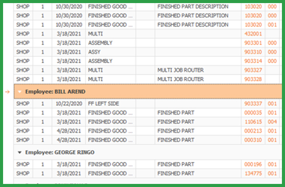 - Labor Tracking: Measure standard hours by employee, department, shop, or machine; track direct, indirect, and overtime hours.