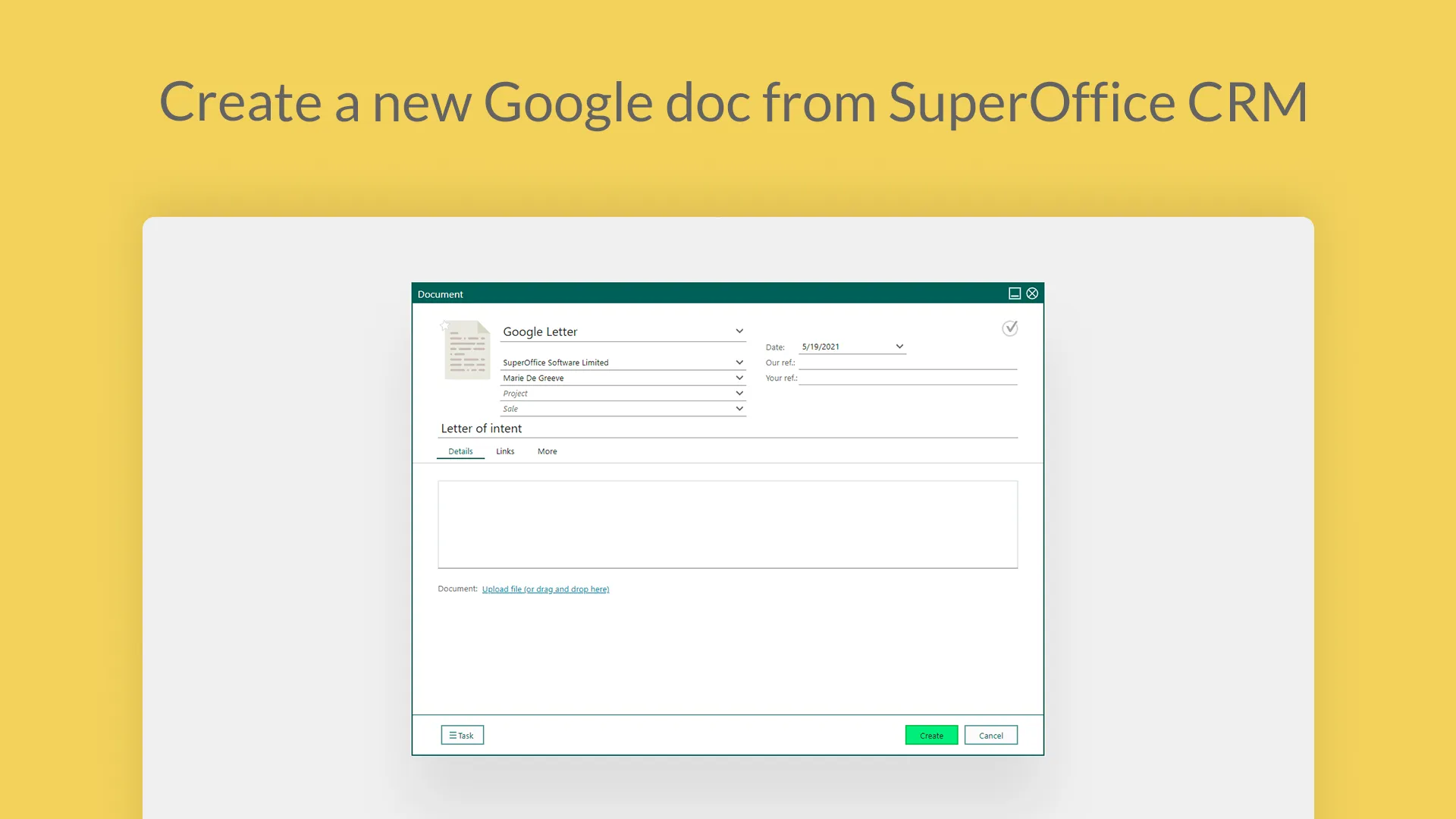 - Benefit from all the document management features available in Google Workspace directly from your SuperOffice CRM.