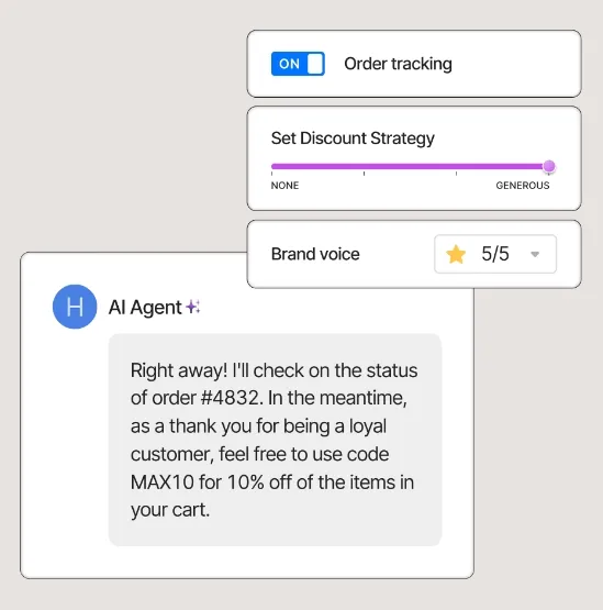 - Customizable Behavior: Merchants can define what the AI Agent can and cannot do, ensuring control and compliance.