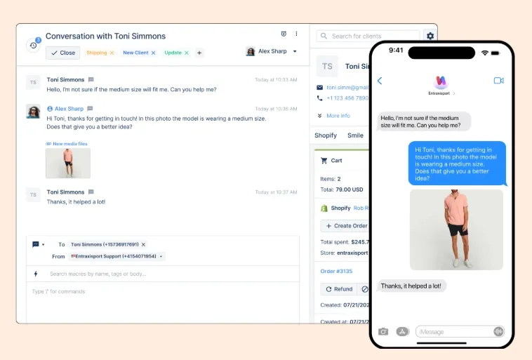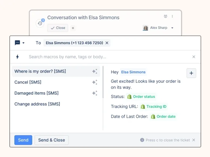 - Customer Context: View customer profiles, order history, and previous interactions during SMS conversations.