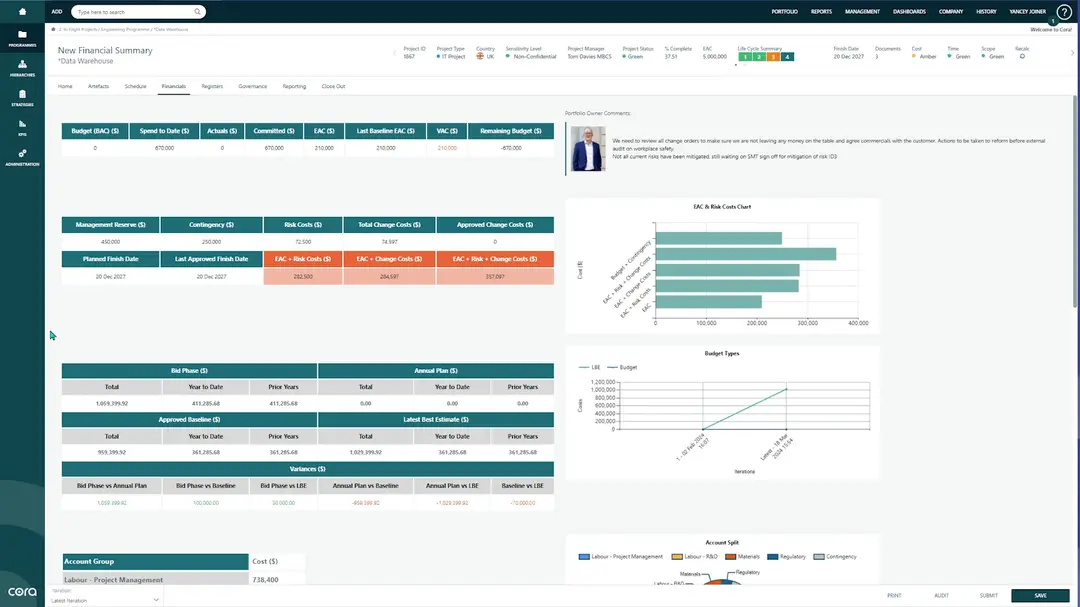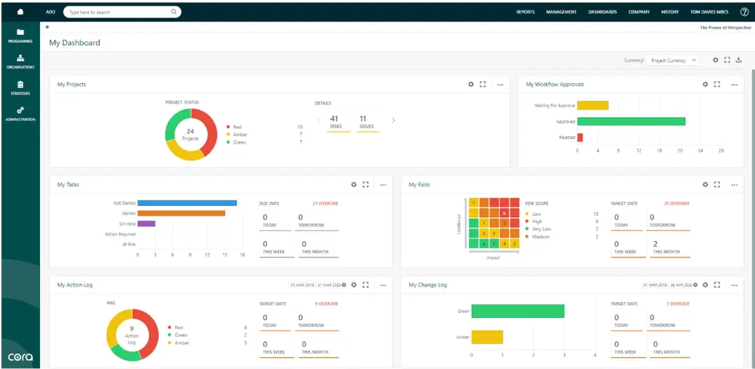Cora Systems – GovCon is a cloud-based project and portfolio management platform designed to support organizations delivering government contracts and regulated programs. It provides structured project controls, financial oversight, governance workflows, and reporting capabilities aligned to the needs of government contracting environments. The platform centralizes project data, budgets, forecasts, risks, documents, and performance metrics within a controlled framework. It enables organizations to manage contract lifecycles from bid and authorization through execution and closeout, while maintaining compliance and audit readiness. Cora GovCon supports detailed financial tracking, earned value management, cost control, and program reporting. It is structured to help contractors meet regulatory, audit, and reporting requirements common in public sector and defense environments. Delivered as a Software-as-a-Service (SaaS) solution, GovCon provides configurable workflows, role-based access, and integration capabilities with enterprise financial and ERP systems.