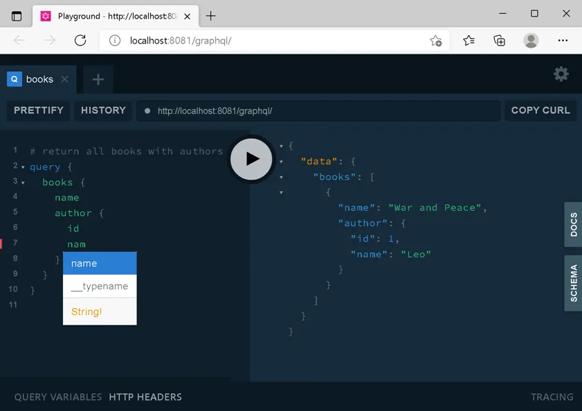 - Automatic JSON serialization & deserialization Built‑in GraphQL Playground