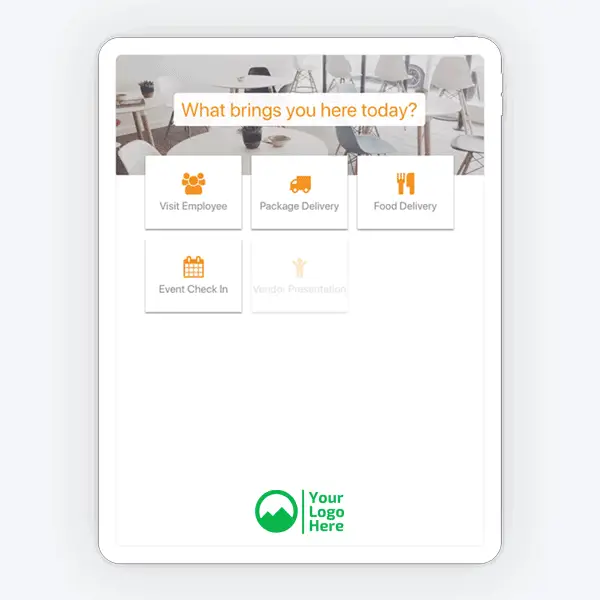 - Visitors check in via kiosk, tablet, or mobile device.
