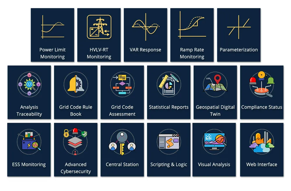 - Multi-Function Fault & Event Recorder – Visualize fault waveforms & determine fault location & type Grid Compliance Monitoring Assessment