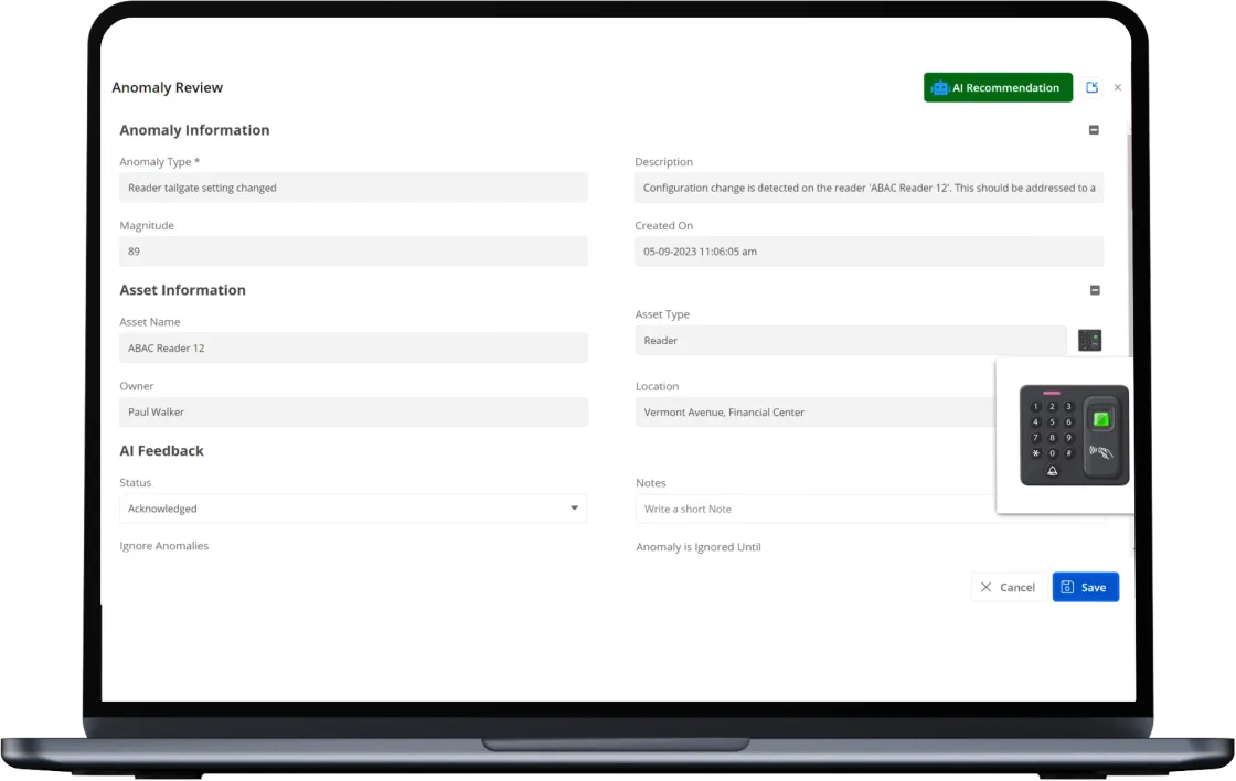 Our new Asset Intelligence feature revolutionizes how you manage and secure assets. From access control readers and video surveillance cameras to any IoT devices, get real-time visibility and anomaly detection to prevent threats before they happen. The intuitive user interface includes: