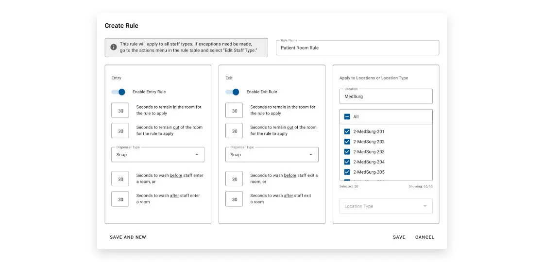 - Automatic event capture: The RTLS identifies hand-hygiene opportunities (enter/exit patient zones) and logs dispenser activations without manual observation, providing continuous, unbiased data.