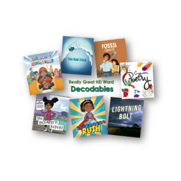 - **Decodables: **Carefully crafted reading texts that provide targeted practice in decoding and word recognition. These texts are designed to gradually increase in complexity, helping students build confidence and mastery over advanced word patterns.