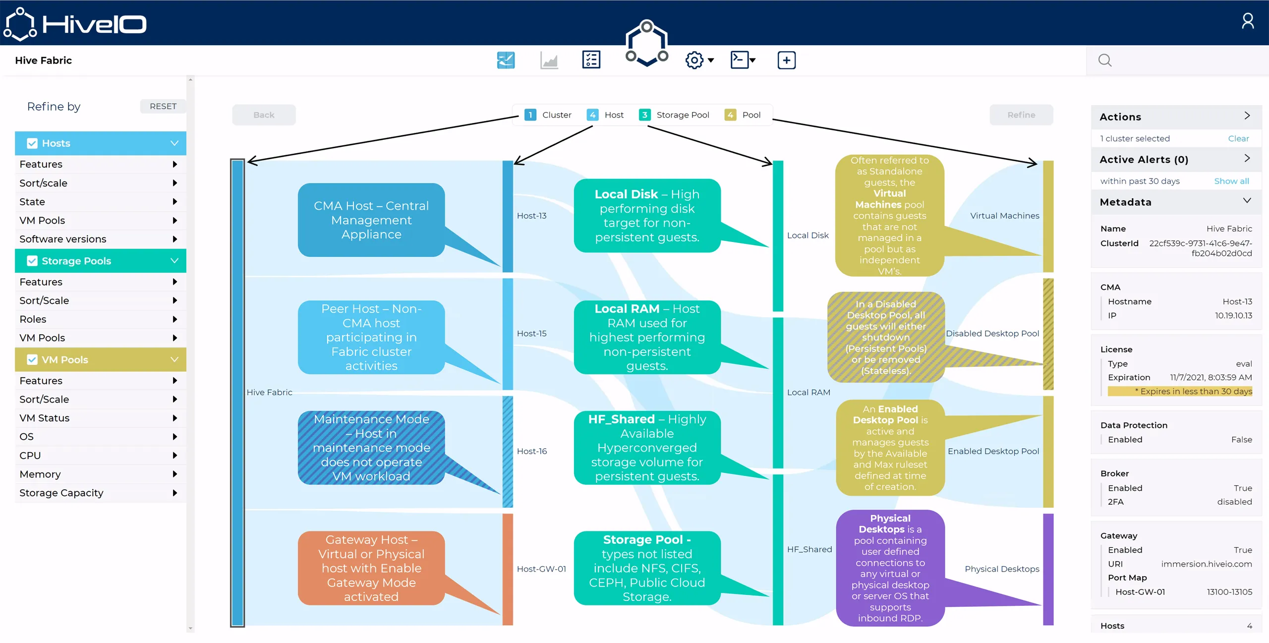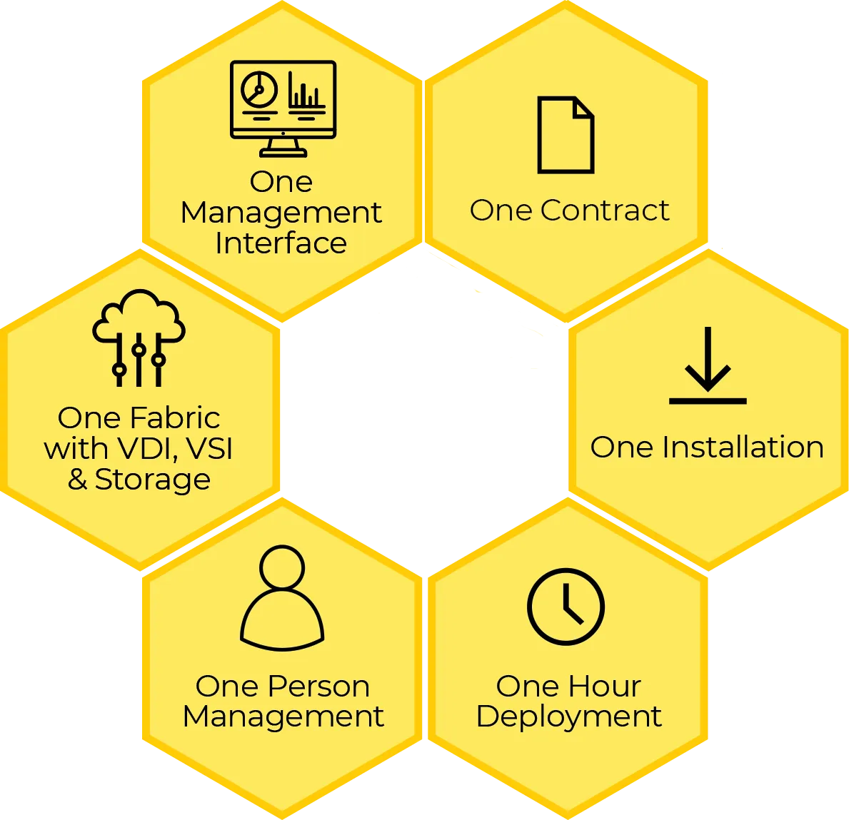 Hive Fabric is an intelligent virtualization platform that integrates hypervisor, storage, networking, and desktop brokering into a single solution, enabling fast deployment, simplified management, and high performance for VDI, HCI, and edge computing environments.