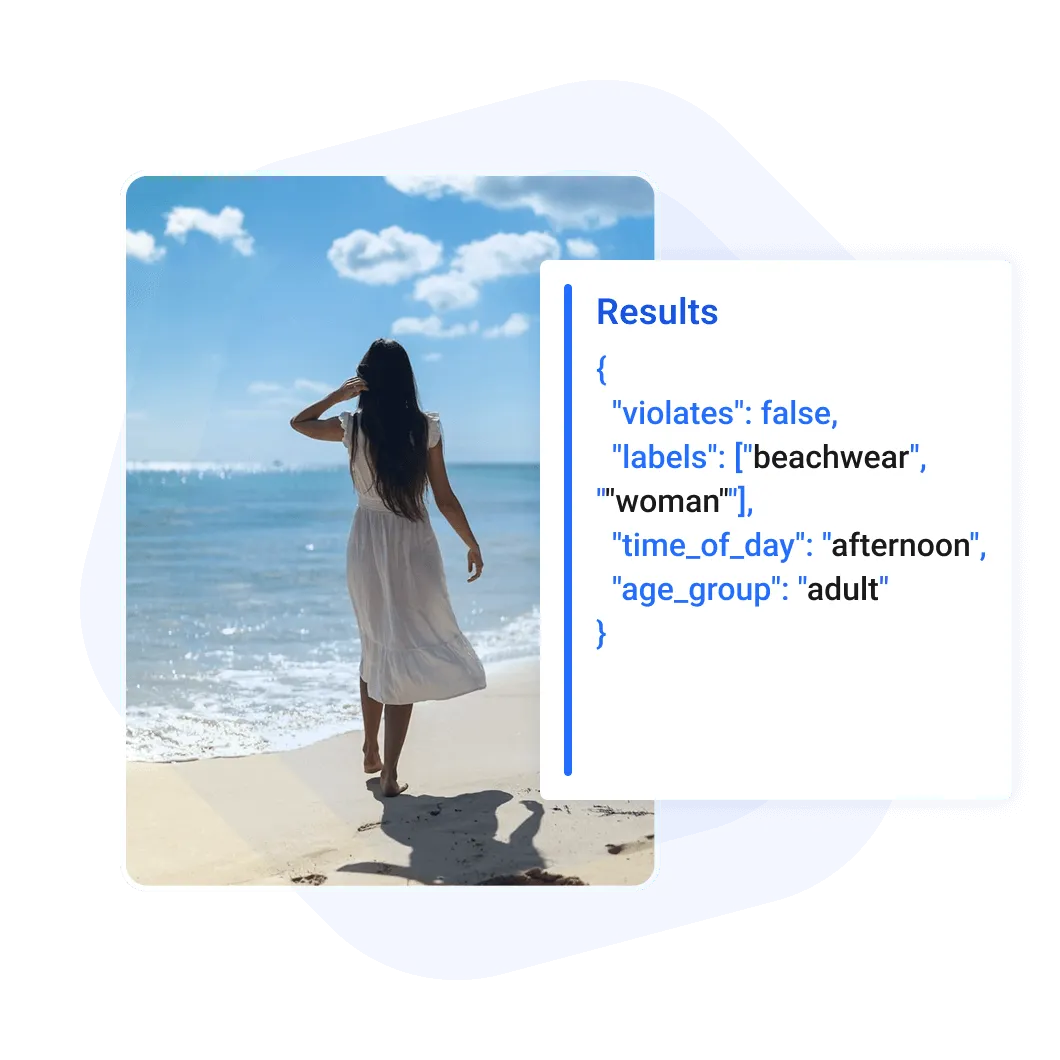 - Detects policy violations such as minors with alcohol, harmful text on images, or sarcastic profanity
