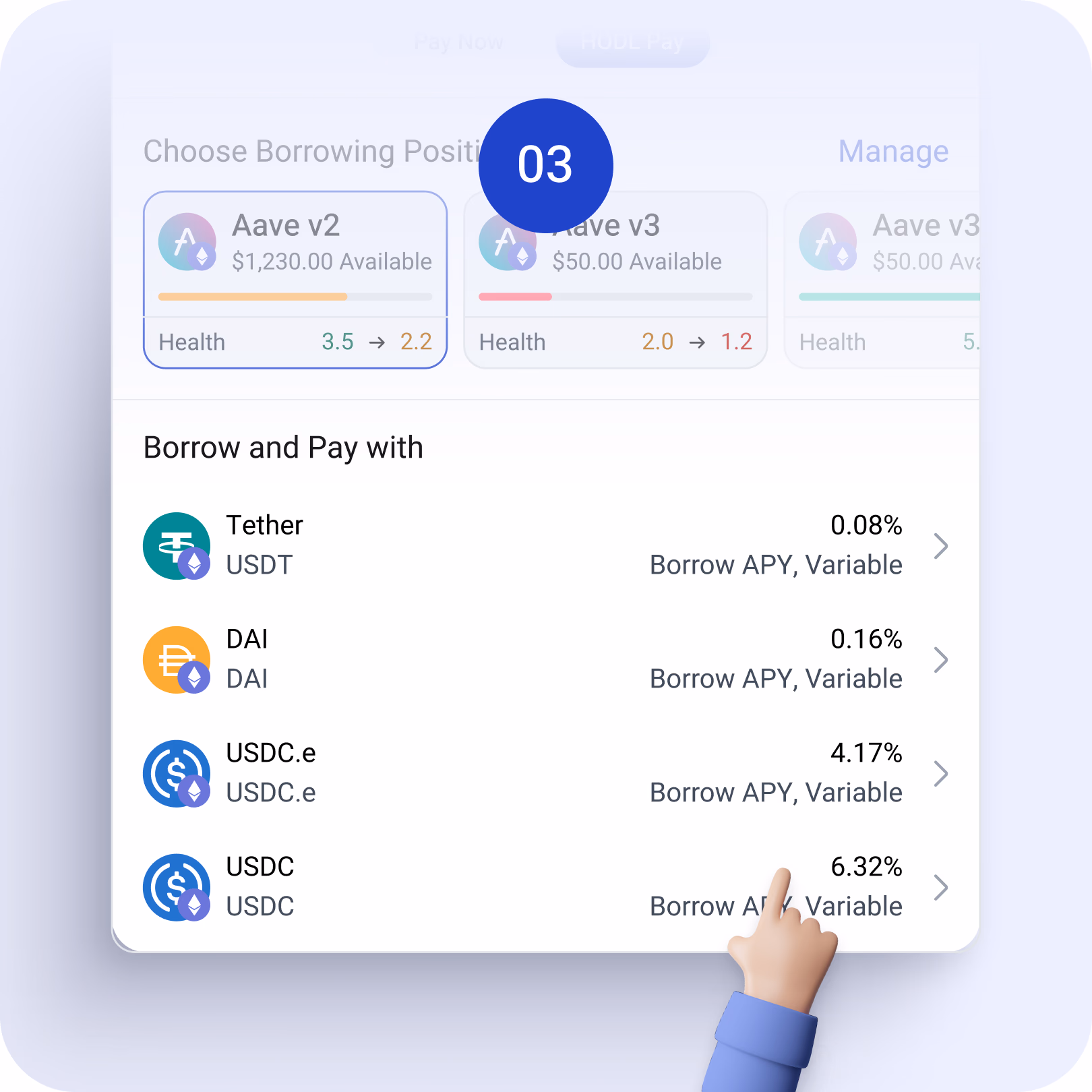 - Flexible Repayment: Repay borrowed funds at your convenience through Aave.