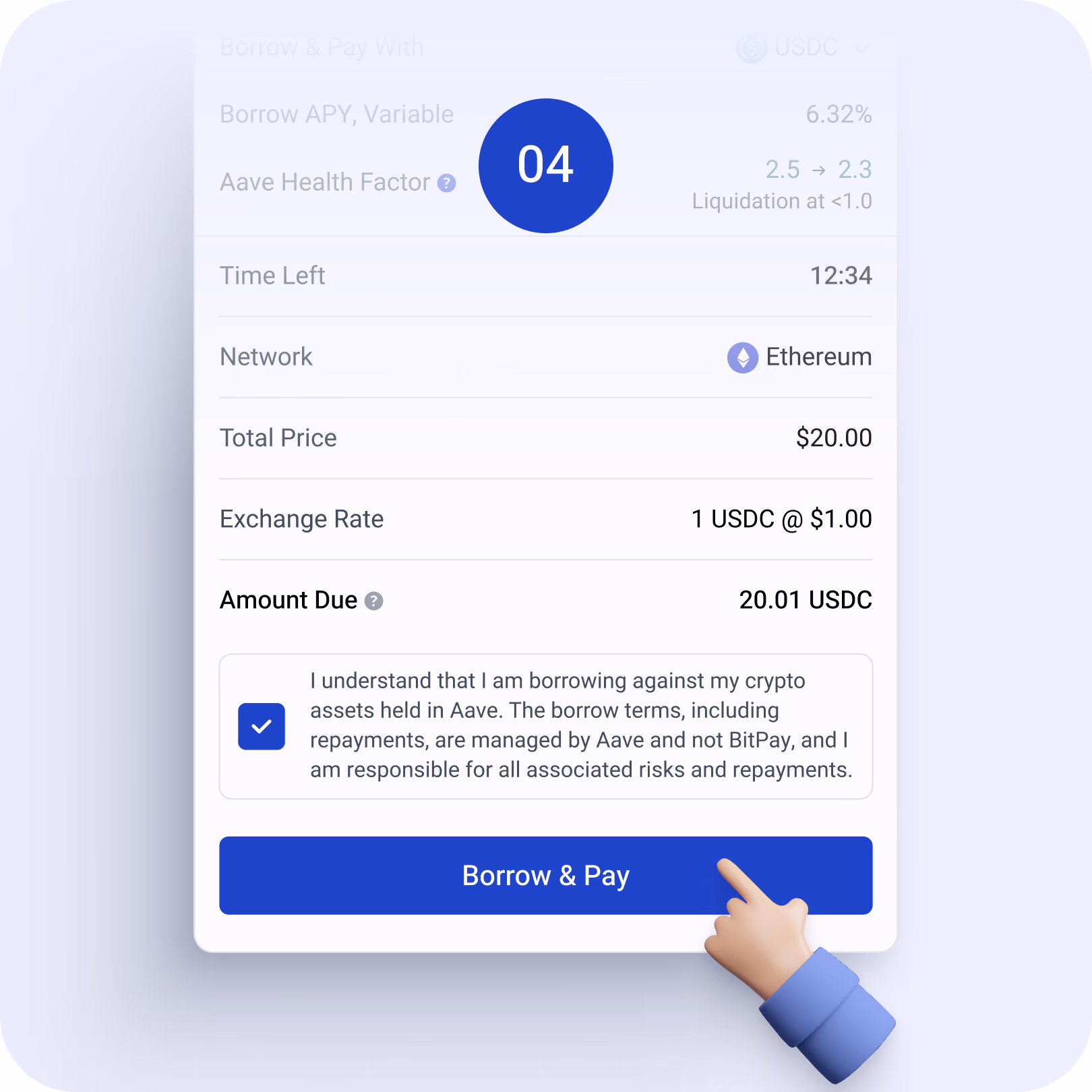 - Borrow-to-Pay Integration: Borrow stablecoins directly from Aave and pay BitPay invoices in one seamless transaction.