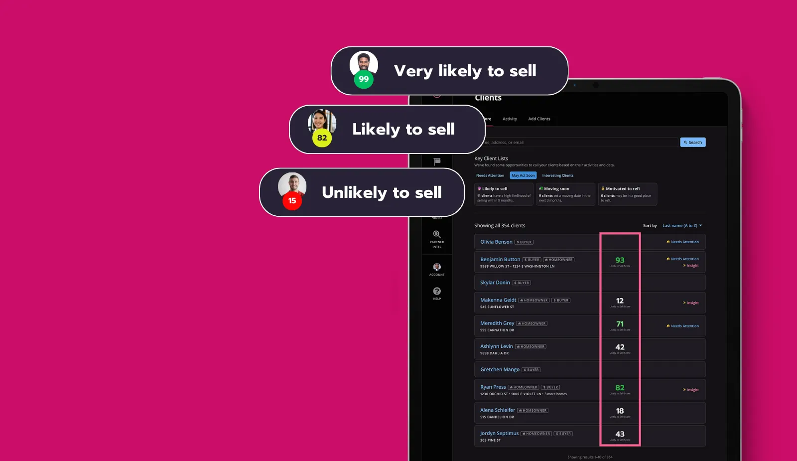- AI-driven insights to identify high-intent buyers and sellers.