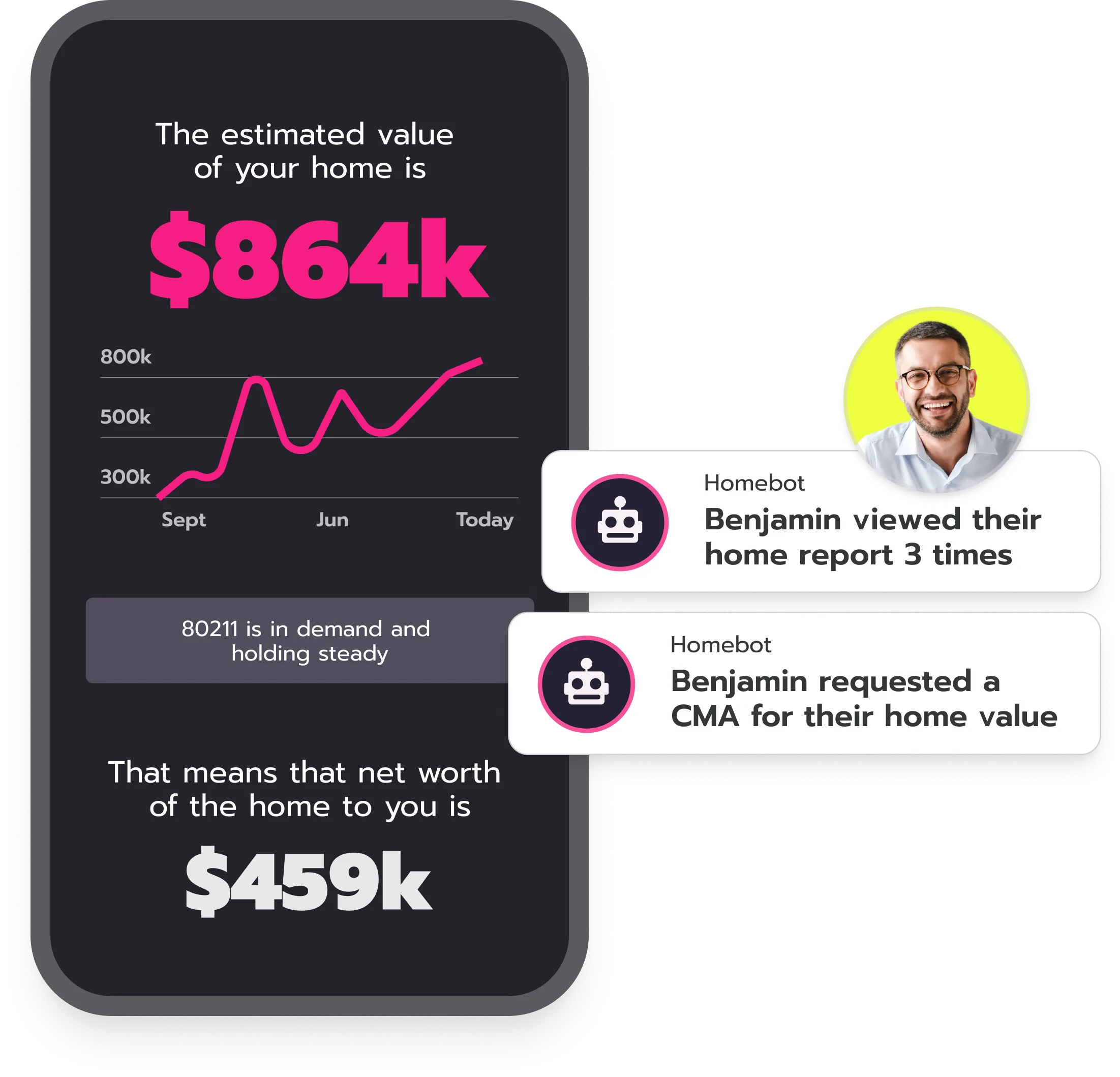 Homebot is a client engagement platform for mortgage lenders and real estate professionals. It delivers personalized home finance insights and market data to homeowners and buyers, helping professionals build stronger relationships, identify high-intent clients, and drive more transactions through data-driven engagement.