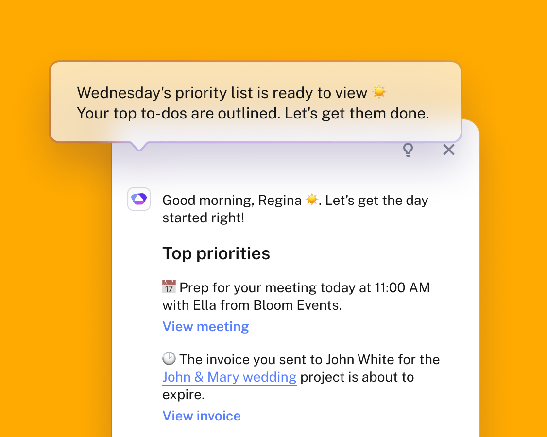 HoneyBook AI offers a suite of artificial intelligence tools aimed at streamlining operations for small businesses. It helps users focus on client interactions by automating tasks such as taking meeting notes and summarizing action items. The platform assists in prioritizing daily tasks, transforming to-do lists into actionable plans to improve productivity. It also provides predictive alerts for leads with a high likelihood of booking or selecting high-value services, turning insights into timely actions. For communication, HoneyBook AI generates instant, personalized email responses tailored to the user's tone, industry, and specific context, enabling faster replies. Additionally, it simplifies preparation for meetings or deadlines by generating comprehensive summaries that include project details, discussed services, and outstanding tasks. The goal is to allow HoneyBook AI to handle more of the operational burden, freeing up business owners to focus on growth and client relationships.