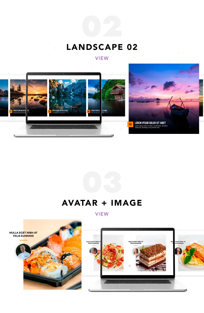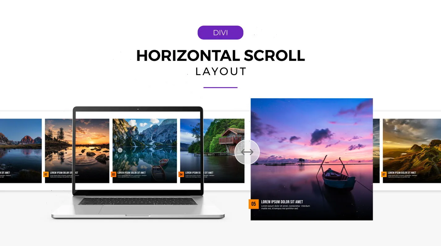Divi Horizontal Scroll Layout is a pack of seven layouts to create galleries and visual landscape sections.