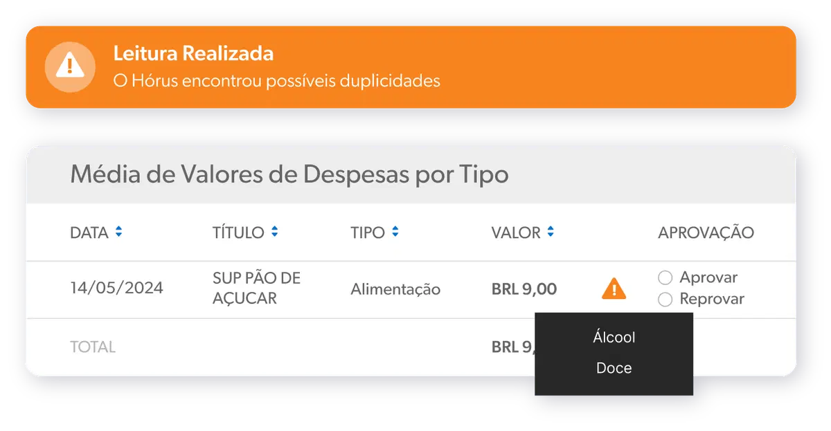 Hórus is an AI-powered anti-fraud system by VExpenses that automatically audits corporate expenses, detecting duplicate receipts and policy violations like prohibited items, ensuring compliance without manual effort.