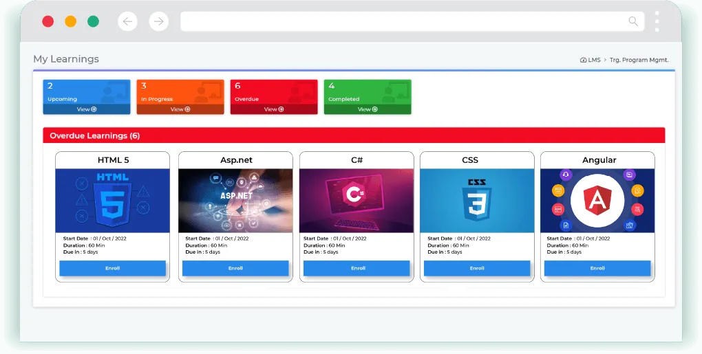 - **Learning Management: **Your LMS policies, faculty, venue & training program management can be done using this module. You can manage all the workflows related to training requests, nominations, training feedback, trainees' performance evaluation & post-training effectiveness evaluation in this module.