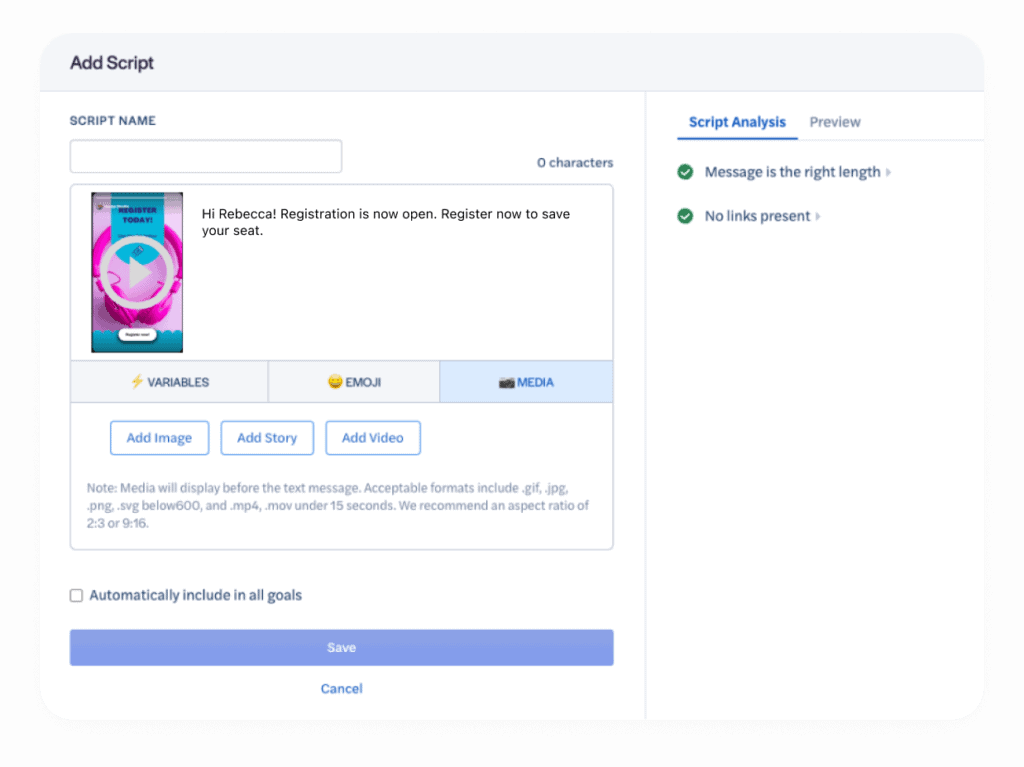 - Include personalized videos, links, funny GIFs, and emojis
