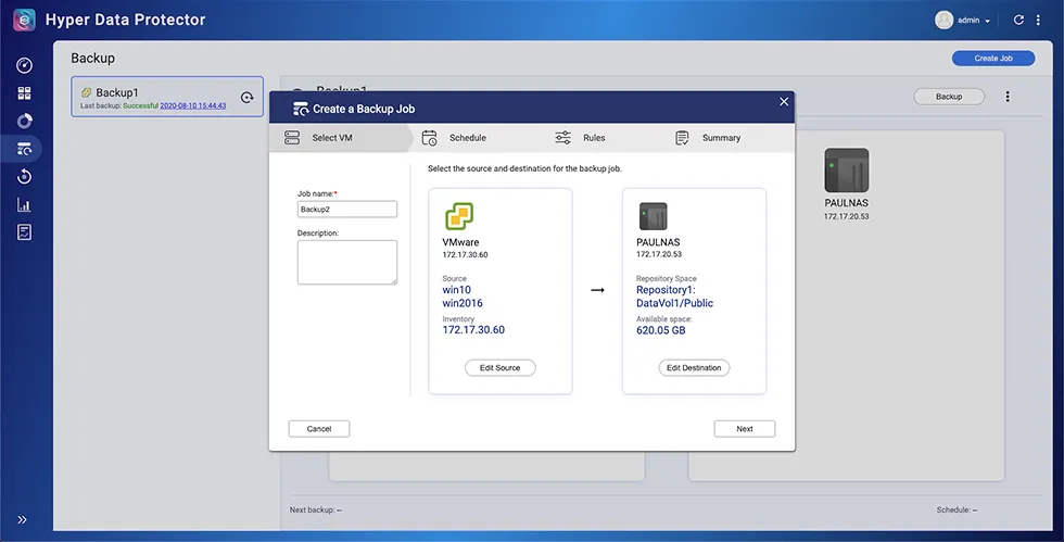Now you don’t need a separate hardware and software for virtual machine (VM) backup. With QNAP NAS and Hyper Data Protector, you can create an agentless backup task for unlimited VMware® vSphere and Microsoft® Hyper-V VM backup. Hyper Data Protector features incremental backup, global deduplication, backup scheduling and recovery compression to greatly save on backup time, storage and recovery time. With no licenses or extra costs required, Hyper Data Protector is ideal for creating a cost-effective and reliable recovery plan.