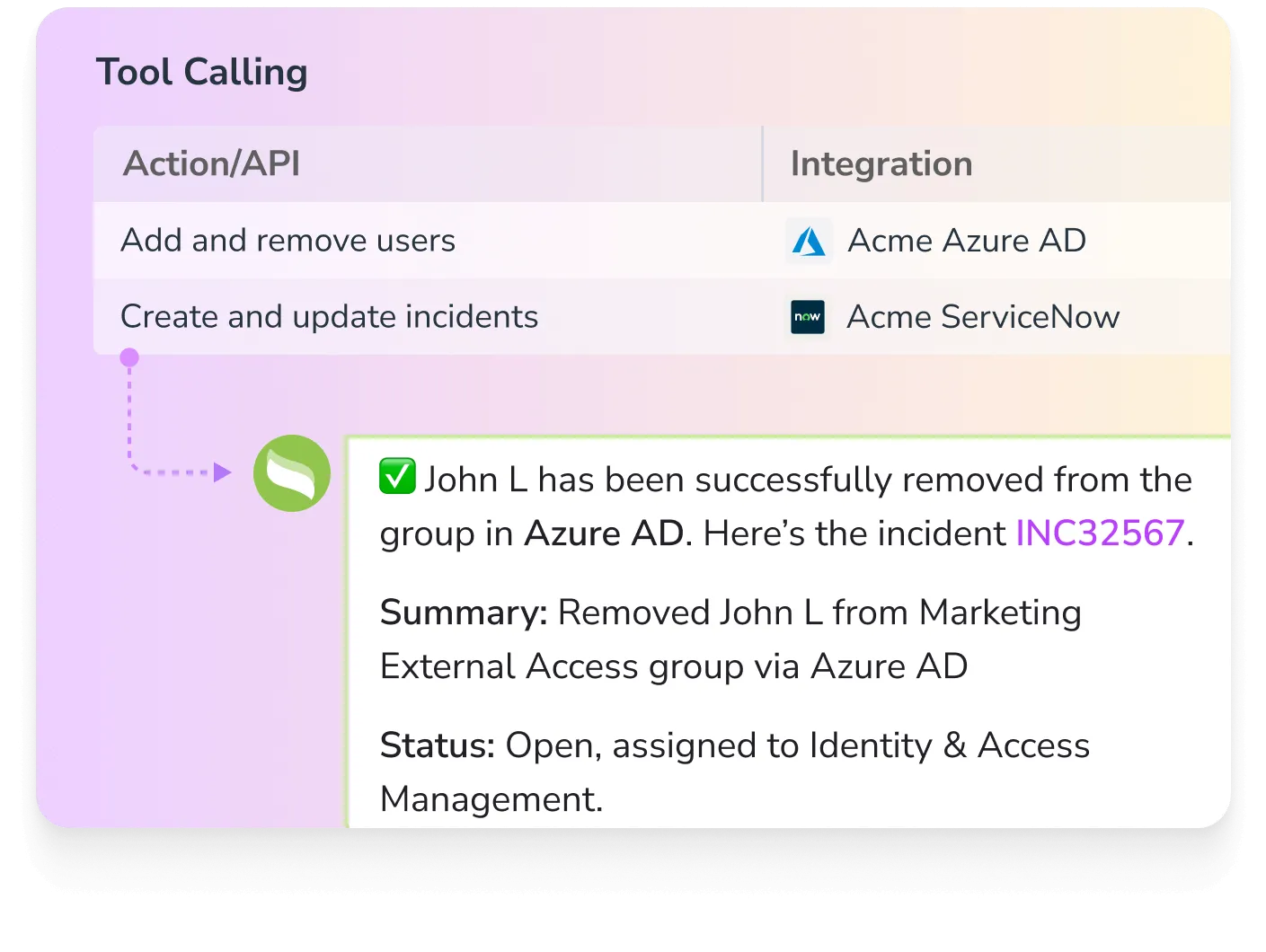 No workflow? No problem. The AI agent automates and orchestrates tasks on the fly and builds the workflow for future use, helping you solve more problems with less effort.