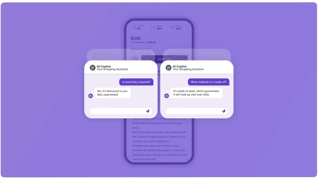 - Generative AI Assistance: Provides instant, context-aware answers to shopper questions.