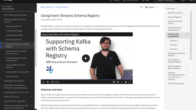 - **Schema Registry: **Schema Registry provides a centralized repository for managing and validating schemas. The Event Streams Schema Registry stores a versioned history of schemas and supplies an interface for retrieving them.