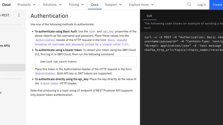 - **Kafka made easy: **Use IBM productivity tools and the command line interface (CLI) to implement best practices. Create Event Streams instances and subsequent configuration by using Terraform. Work with all the standard Kafka APIs and clients on an Event Streams instance for a native Kafka experience. Additionally, Event Streams also provides 3 of its own APIs: Admin REST API, REST Producer API and Schema Registry API.