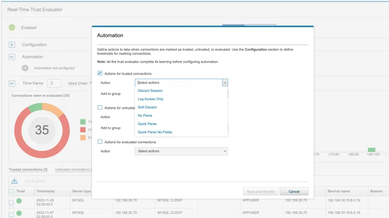 - **Enforce security policies in near real time: **Enable your team to quickly discern and focus on the most significant threats with actionable intelligence. Quickly monitor security policies and sensitive data access control, privileged user actions, change control, application user activities and security exceptions for faster remediation.