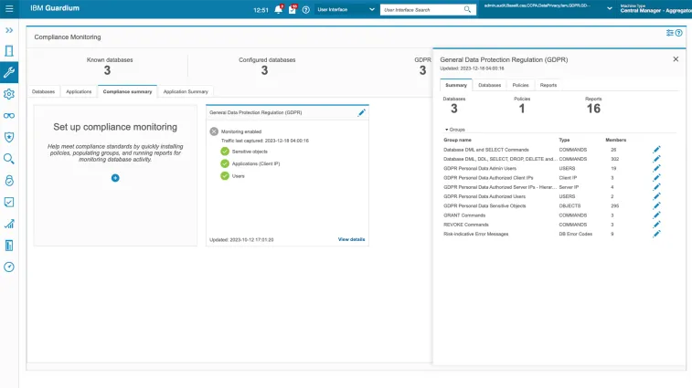 IBM Guardium® Data Protection is data security software in the Guardium family of IBM Security® products. It is comprehensive data protection software that guards on-premises and cloud data stores through features such as data activity monitoring and analytics, near real-time threat response workflows, and automated compliance auditing and reporting.