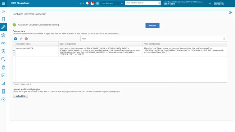 - **Universal connector: **The Universal Connector is a lightweight open-source framework. It is used to develop plug-ins for Guardium to monitor cloud and on-premises data sources by using native audit logs. Customers and partners are encouraged to build their own plug-ins by using the Universal Connector framework.