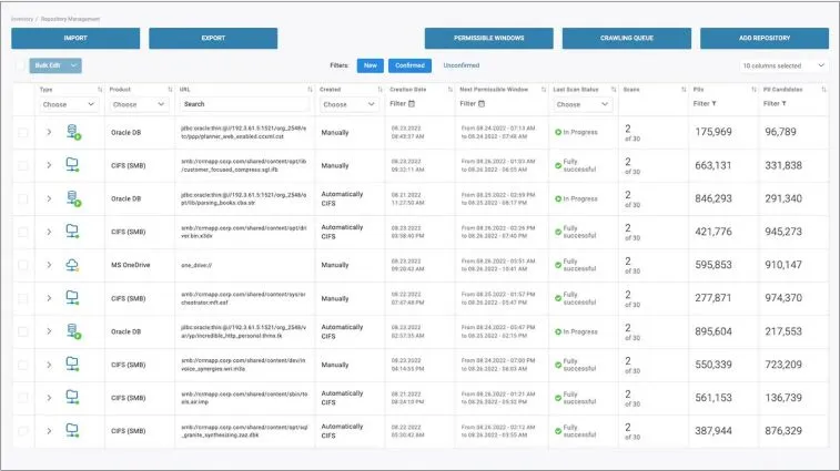 - **Greater data source visibility: **Find and map previously unknown data—at rest or in motion—in the cloud or on premises.