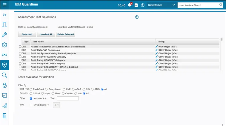 IBM Guardium Vulnerability Assessment scans your data environment to detect vulnerabilities and suggest remedial actions.