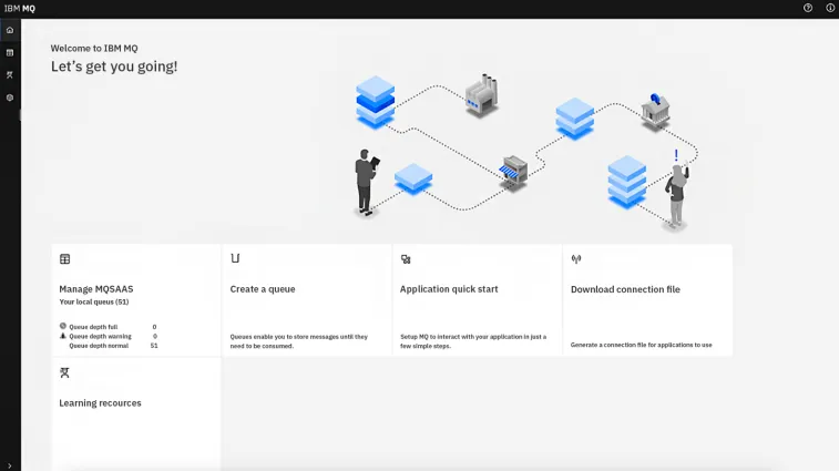 - **Built In MQ Console: **No hassle configuration of IBM MQ SaaS queue managers using the built in administrative IBM MQ Console.