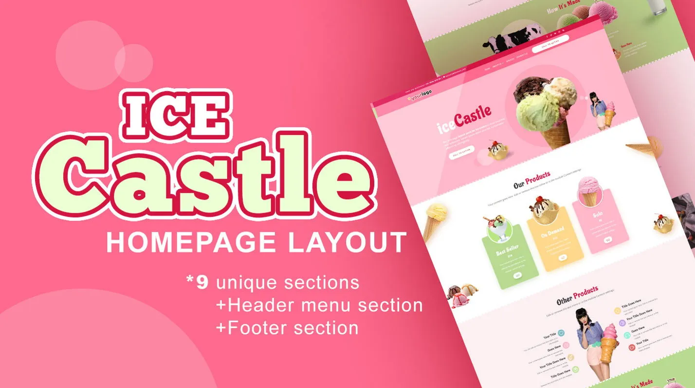 Ice Castle Homepage layout was made to attract customers to your website with 9 colorful sections and unique Blurb module layout. It was designed for local business such as restaurant or ice cream website.
