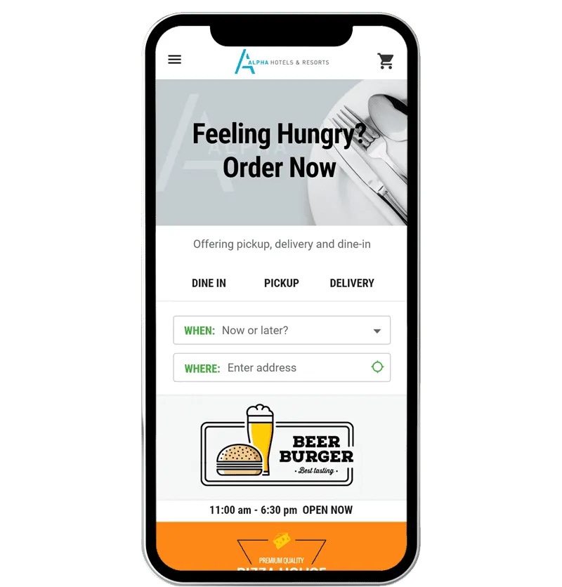 Guests can view and order from a variety of food & beverage locations on your property. Whether it’s a food court, bar, restaurant or room service, you determine the venues and the items you want to offer.