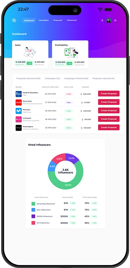 - Campaign Management: Create, manage, and monitor influencer campaigns from a single dashboard.