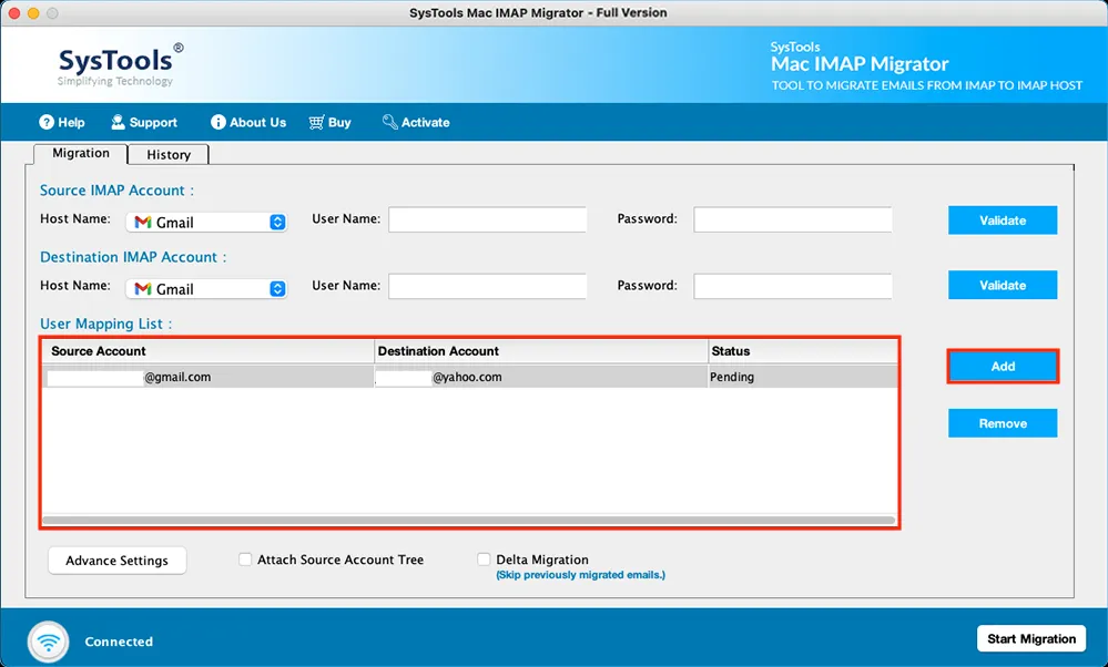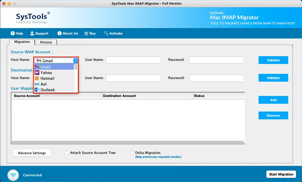 - Migrates emails from various IMAP-supported accounts like Gmail, AOL, Outlook, and iCloud.