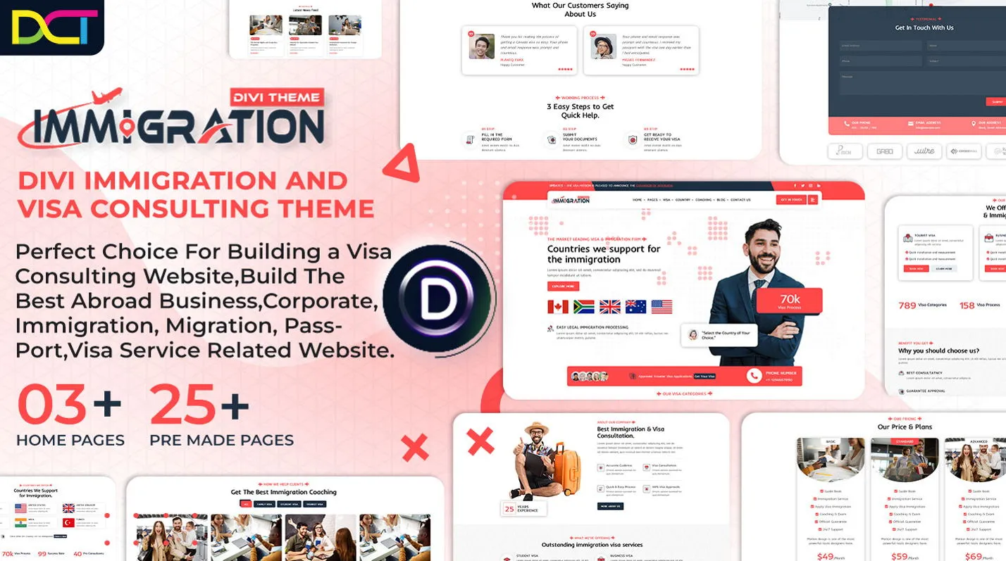 Multi Purpose 25 + Pr-Built Pages Best Immigration Divi Visa Consulting Theme perfect for those who want to create a professional-looking WordPress-based website for any kind of for abroad business, immigration, multipurpose theme, overseas jobs, responsive theme, tourism website, travel planner, visa agency, visa consulting, visa service websites.