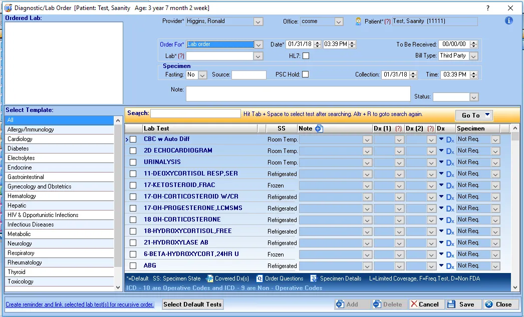 - Order detailed lab tests using premade templates.