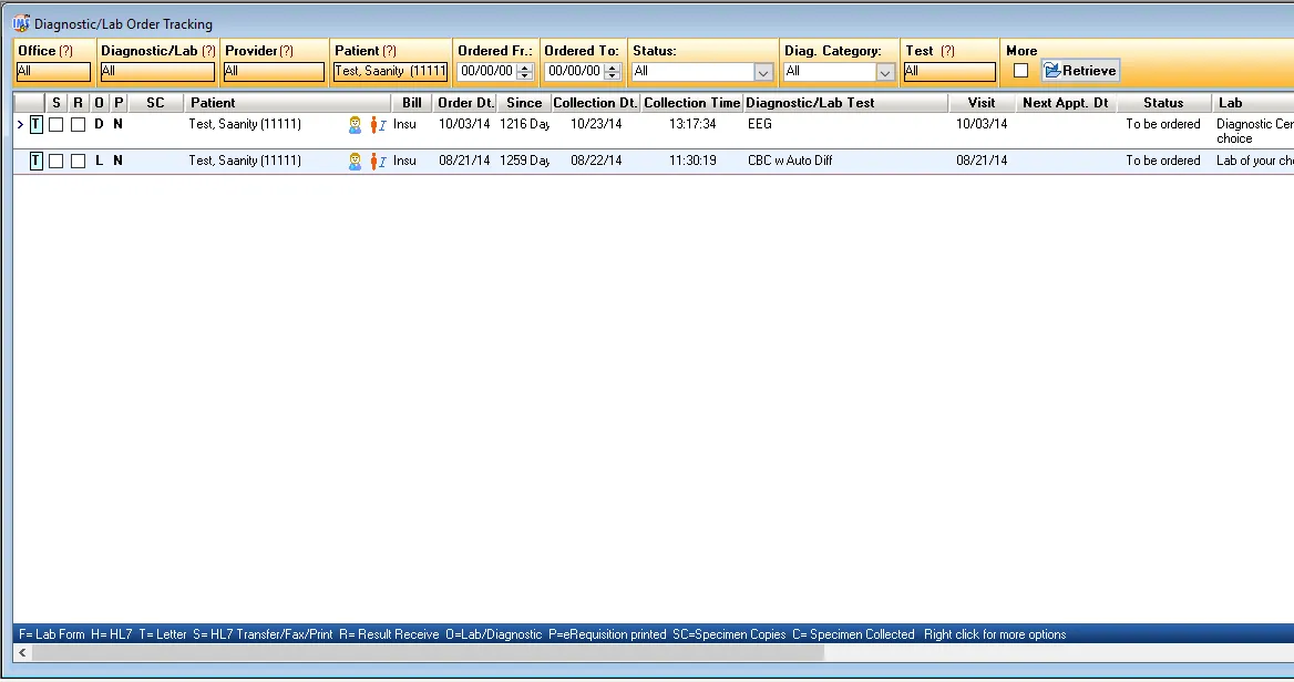 - Track diagnostic or lab tests and results on a single screen.