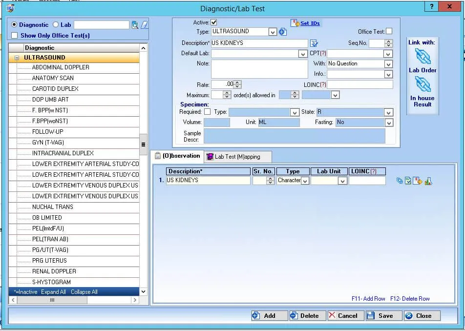 - Manage standard lab/diagnostic tests or customize as needed.