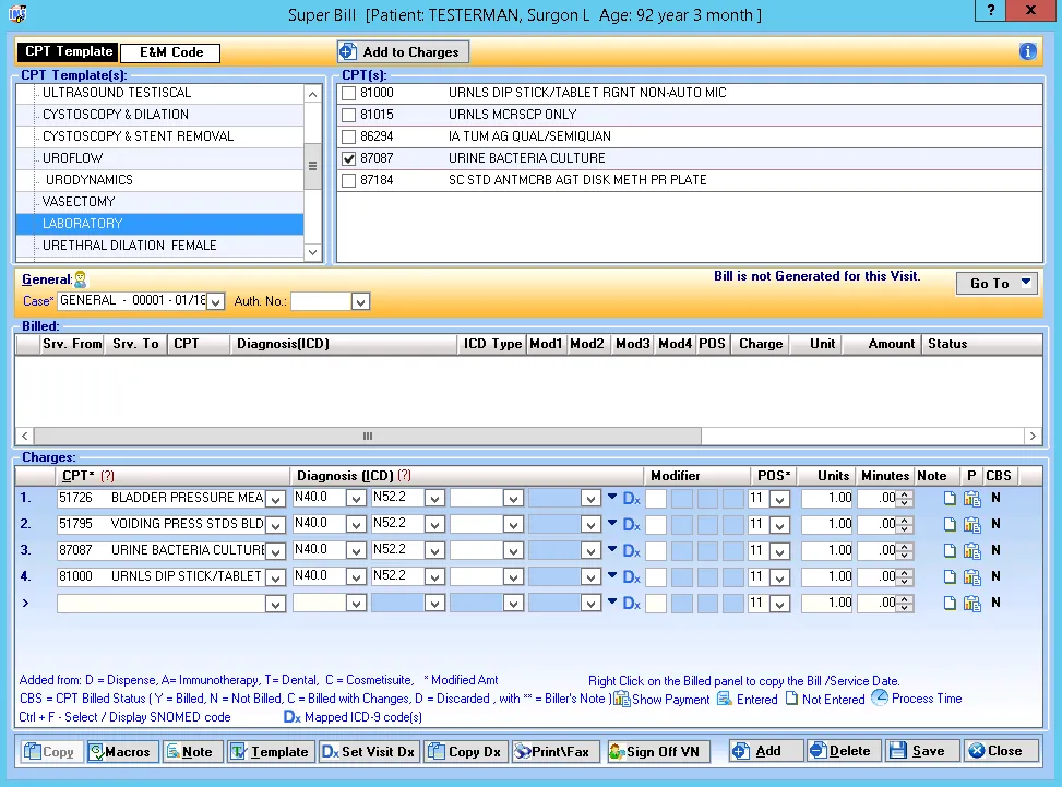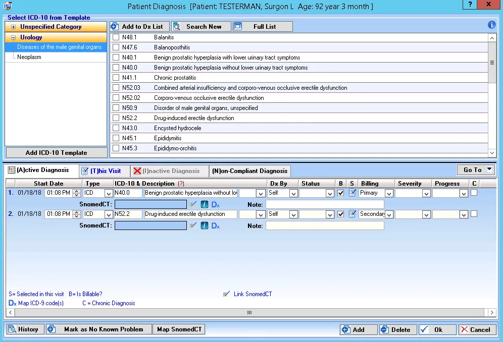 Focus less on paperwork with custom-built HPI, procedure, and treatment templates. Document everything on a single screen using charts that are customized for Urology data, and quickly search the most used diagnosis codes among hundreds of diagnosis templates.
