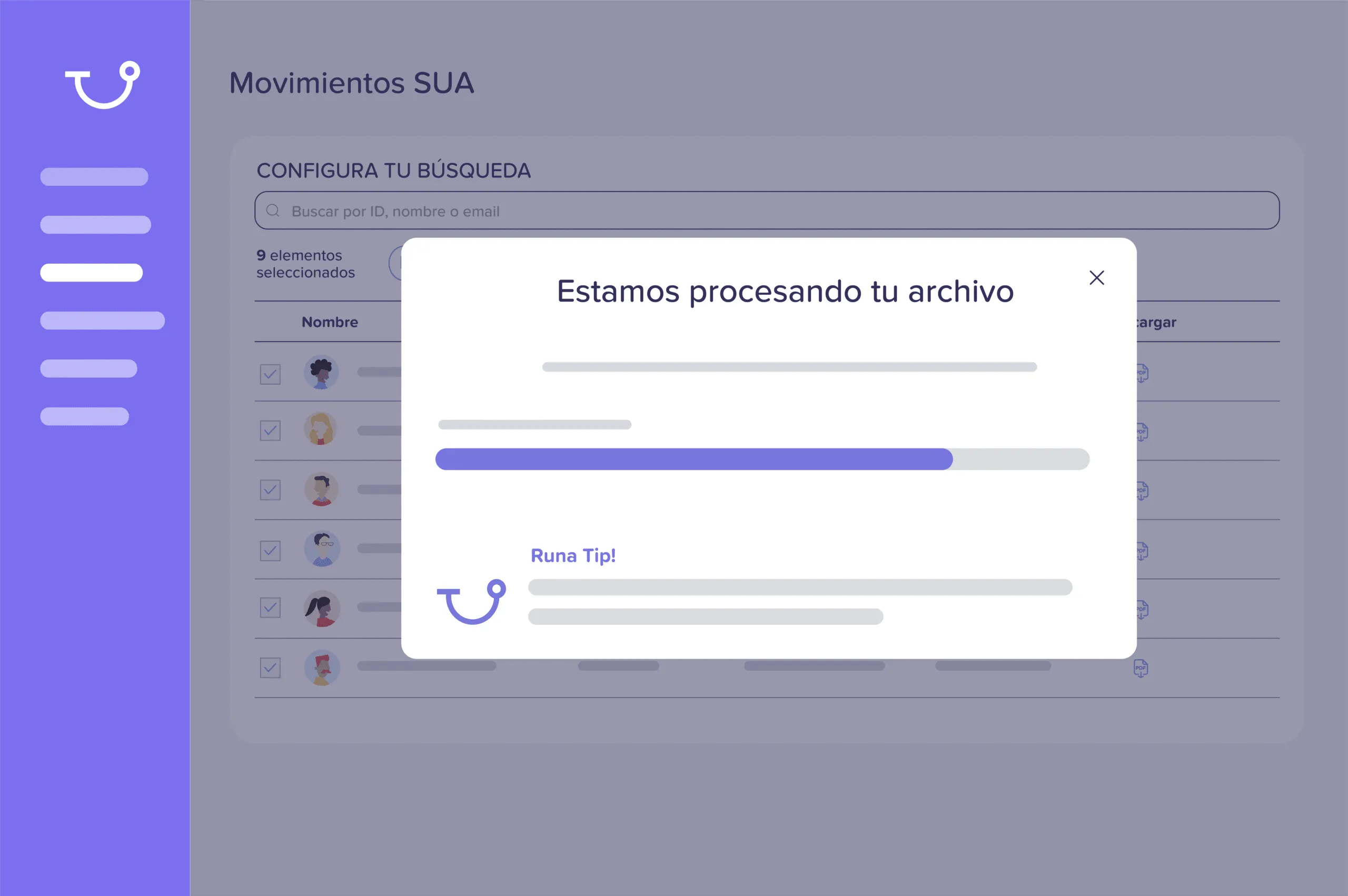 - Automated registrations, terminations and salary changes: Reports employee alta, baja and salary change events directly to IMSS via the IDSE connection from within the Runa platform.
