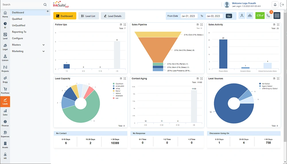 In4Suite® ERP is an enterprise resource planning software specifically tailored for the real estate industry. It provides end-to-end management capabilities, offering complete visibility into real estate business information to streamline processes, improve efficiency, manage complexities, and ultimately increase revenue. The platform covers critical areas such as land acquisition and management, legal processes, project management, sales, engineering, purchasing, and business development. It facilitates detailed land banking, capturing purchase details, payment schedules, ownership information, and transaction types. Integration with Google Maps provides demographic and facility insights for land evaluation. Financial modules handle liability booking, cash flow, accounts, payments, tax adjustments, and auto-posting to accounting systems. Business Intelligence powered by Qlik offers deep, actionable insights for identifying areas of improvement and making data-driven decisions across all business processes. In4Suite® ERP integrates with popular third-party tools like Tally, QuickBooks, SAP FICO, Salesforce, CTI, and Oracle Financials, and offers mobile applications for iOS and Android to manage activities on the go, including approvals, sales bookings, and report access.