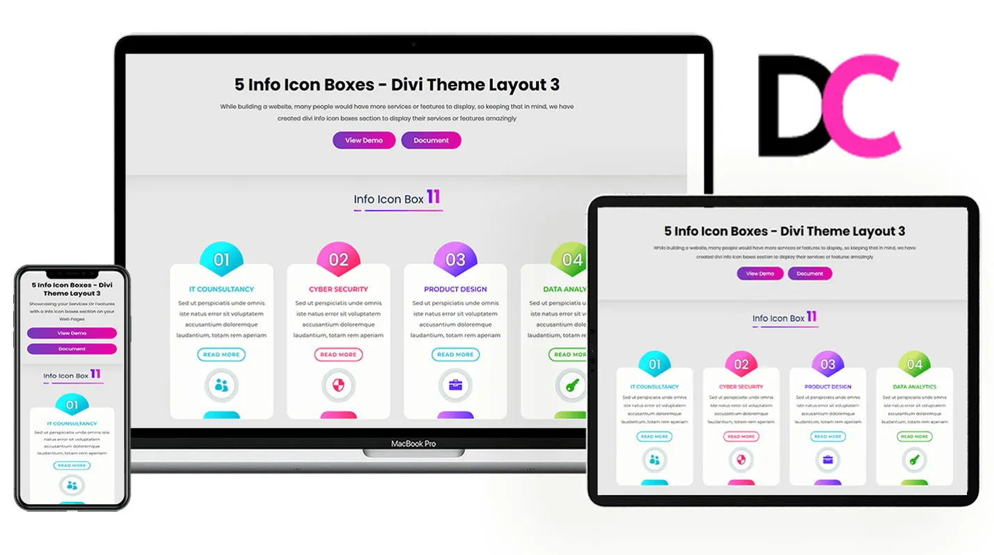While building a website, many people would have more services or features to display, so keeping that in mind, we have created divi info icon boxes section to display their services or features amazingly, which can stand out amongst the other sections of the website and draw users attention. You can easily integrate this section to your website, as its built with latest Divi and its fully responsive, so it would be your ready to go choice. Your services or features section needs to showcase the quality, value, and benefits your business offers.
