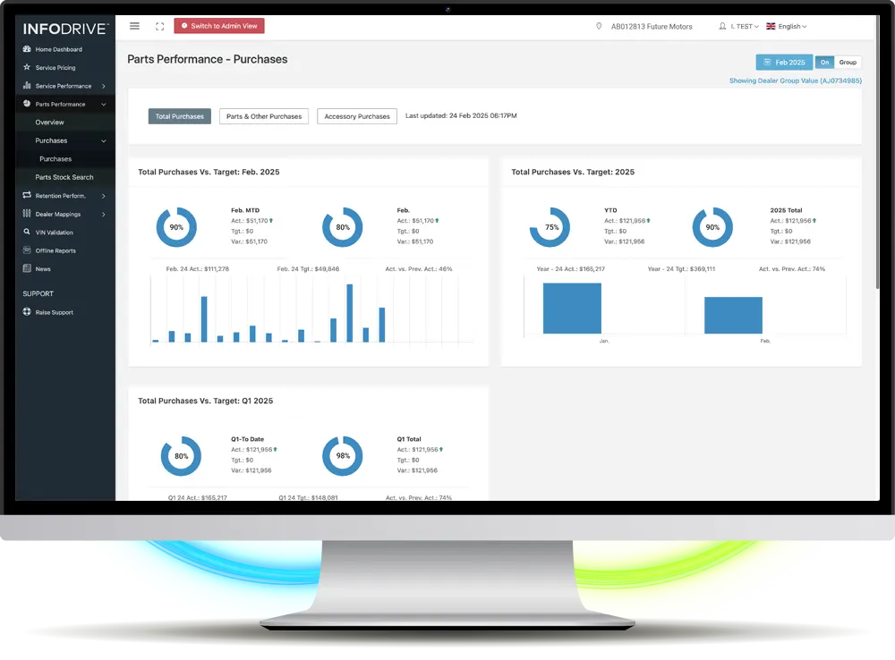 - **Infodrive advanced analytics: **Infodrive combines data science and business intelligence to deliver advanced analytics tailored to the needs of both OEMs and dealers. Automakers gain full drill-down reporting against key KPIs and complete visibility across their entire network, while each dealership accesses its own performance dashboard. With real-time insights into campaign performance, service retention, and parts sales, teams at every level can track results and take action with confidence.
