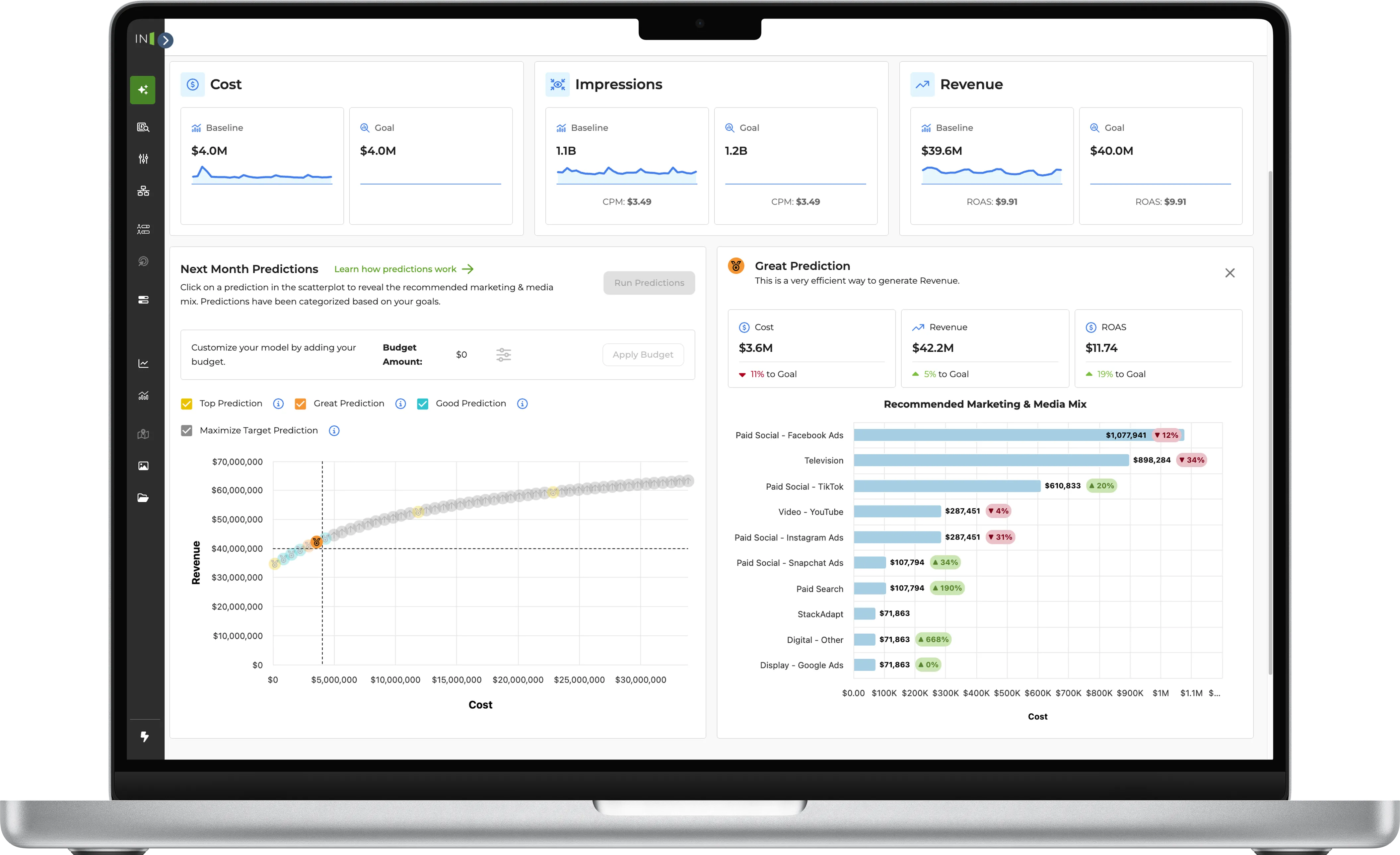 - AI-Powered Media Mix Modeling: Simulates budget shifts and predicts sales impact in real time.