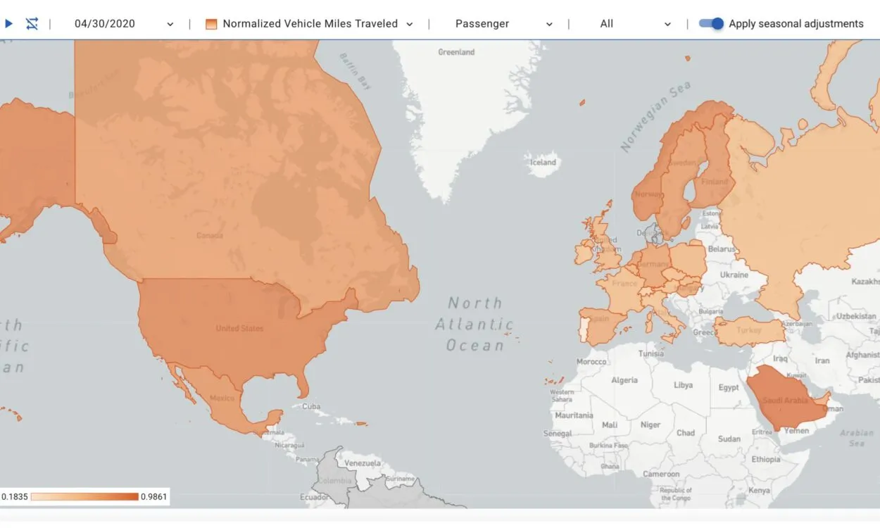 Cloud-based analytics platform delivering real-time and historical VMT, trip counts, and travel trends for transportation agencies and planners.